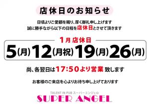 NEWS 2026/01/26(月)店休日のお知らせ《店休日のお知らせ》日頃よりご愛顧を賜り厚く御礼を申し上げます誠に勝手ながら以下の日程を店休日とさせて頂きます1月 店休日5(月)、12(月祝)、19(月)、26(月)※各翌日は17:50〜より営業致しますお客様のご来店を心よりお待ち申し上げております